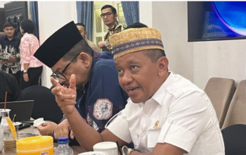 Gubernur Lampung, Rahmat Mirzani Djausal, hadir bersama perwakilan buruh Lampung menyaksikan pidato Presiden Republik Indonesia, Prabowo Subianto, memperingati Hari Buruh Internasional Tahun 2025, di Balai Keratun Komplek Kantor Gubernur Lampung, Kamis (1/05/ 2025).