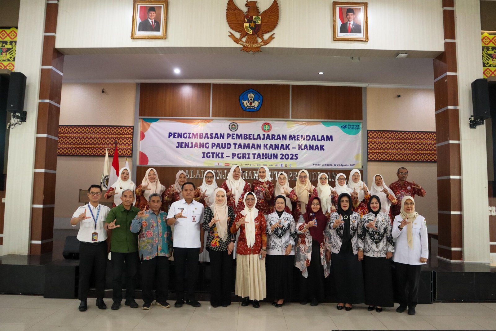 Bunda PAUD (Pendidikan Anak Usia Dini) Provinsi Lampung, Purnama Wulan Sari Mirza, yang diwakili Ketua Pokja PAUD Provinsi Lampung, Agnesia Bulan Rurianti Marindo, menghadiri sekaligus membuka Kegiatan Pengimbasan Pembelajaran Mendalam (Deep Learning) jenjang PAUD Taman Kanak-Kanak bertempat di Aula Balai Penjaminan Mutu Pendidikan (BPMP) Provinsi Lampung, Rabu (20/8/2025).