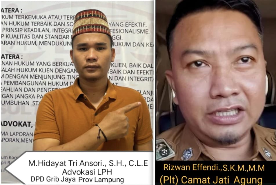 Penerima kuasa Burhanuddin.,S.Hi.,M.Pd. dan rekannya berinisial (R,S,M,H,A.) dengan surat kuasa yang iya dapatkan kini telah menghubungi Advokasi DPD GRIB JAYA PROVINSI LAMPUNG M.hidayat Tri Ansori.,S.H.,C.L.E. Burhanuddin menghubungi bung Dayat lewat Via WA iya mengaku PH camat jati agung hari Jumat tanggal 03 bulan Oktober tahun 2025 surat kuasa itu bertujuan untuk menindaklanjuti laporan camat tindak pidana pencemaran nama baik dan berita bohong (hoaks).