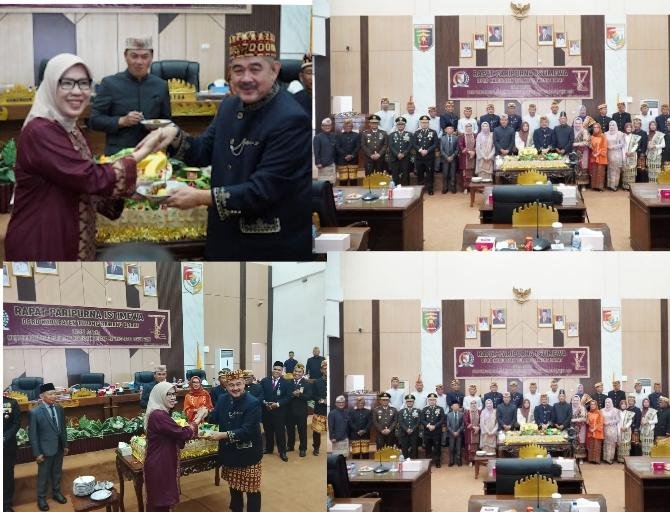 Paripurna ditutup dengan foto bersama Bupati dan wakil bupati, Forkopimda, dan Pimpinan DPRD serta anggota, diikuti prosesi potong tumpeng sebagai simbol kebersamaan dan rasa syukur. (Elwan)