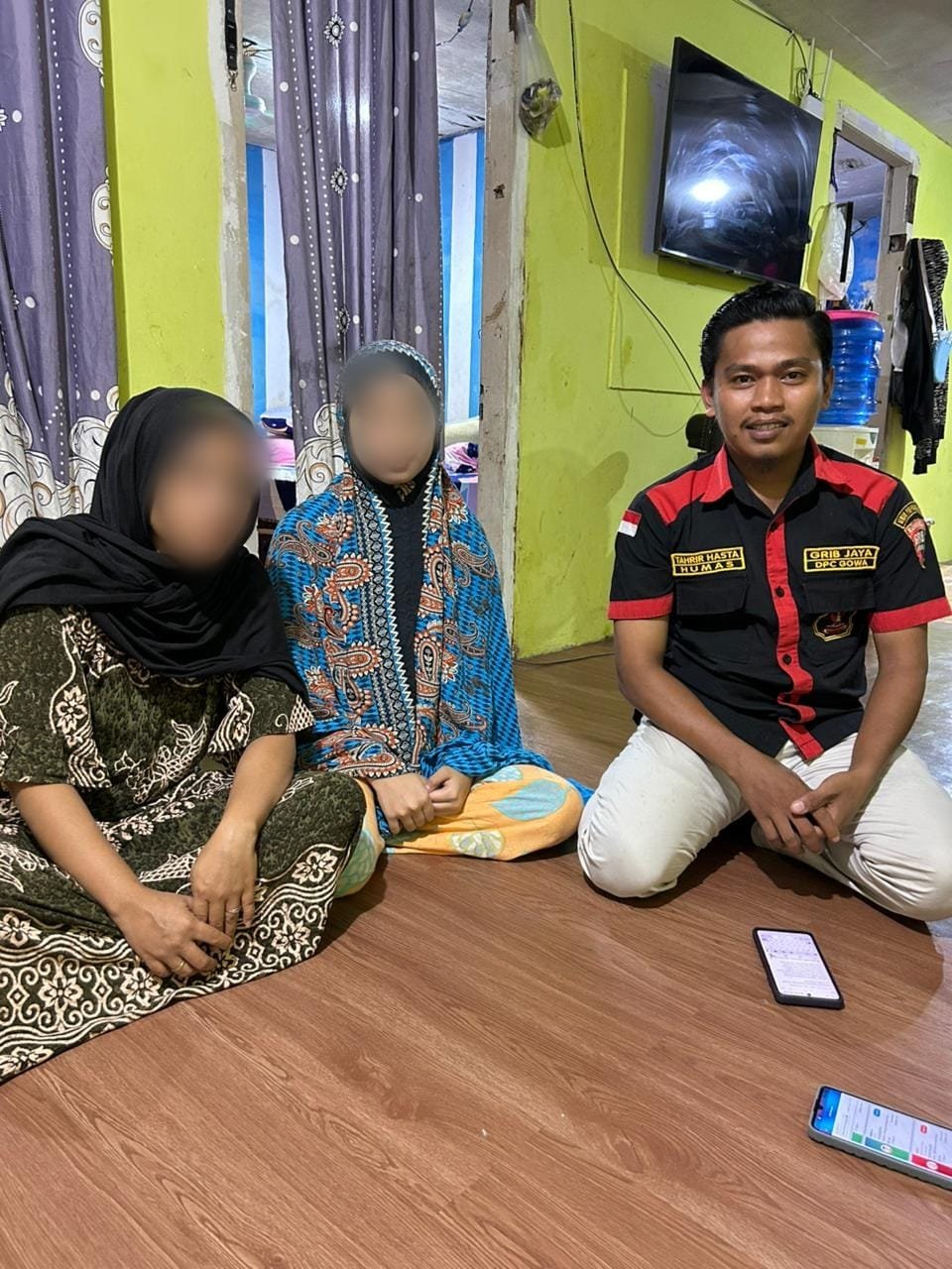 Dalam pendampingan lanjutan di lokasi yang dirahasiakan demi privasi keluarga, Tahrir Hasta tampak duduk bersama korban dan ibunya untuk memberikan dukungan moril serta jaminan perlindungan organisasi.