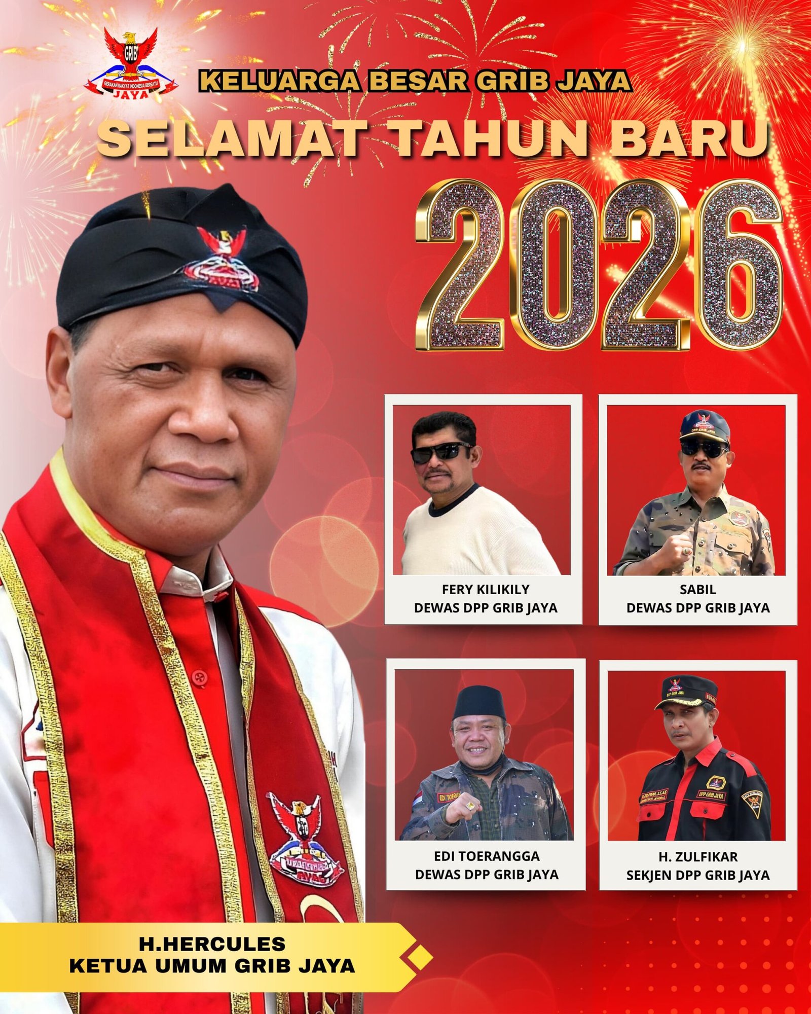 JAKARTA,(www.Ampera-News.com)-Keluarga Besar Gerakan Rakyat Indonesia Bersatu (GRIB) Jaya mengucapkan selamat Tahun Baru 2026 kepada seluruh masyarakat Indonesia.