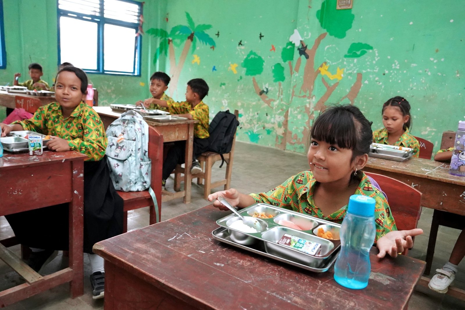“kadang-kadang anak-anak jajan sembarangan, bahkan sekalipun sudah sarapan mereka masih jajan yang kurang bermanfaat, MBG ini lebih baik dan mengurangi jajan anak-anak dan menunya lengkap, ikan, sayuran, susu, jadi lebih bergizi buat anak-anak,” kata Apriyani.