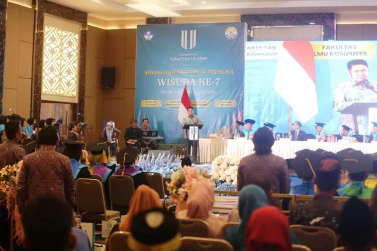 AMPERANEWS.COM – Gubernur Sumatera Selatan (Sumsel), Herman Deru, memberikan pesan inspiratif kepada para wisudawan Universitas Sumatera Selatan (USS) dalam acara wisuda yang digelar di Golden Sriwijaya, pada hari Kamis, tanggal 2 Oktober 2025.