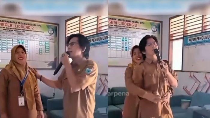 Dalam rekaman tersebut, terlihat seorang pria yang disebut sebagai kepala sekolah bersama seorang guru perempuan asyik bernyanyi sambil berpelukan di ruang guru.