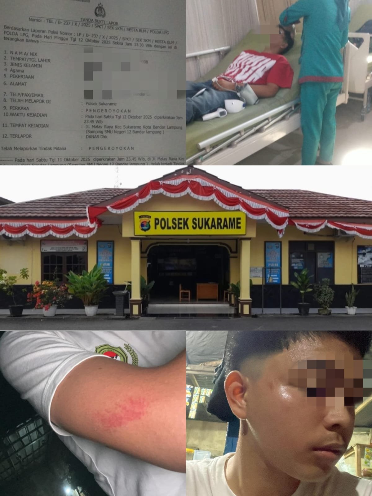 Berdasarkan laporan polisi nomor : LP/B-237/X/2025/SPKT/SEK SKM/RESTA BLM/POLDA LPG, Pada Hari Minggu tanggal 12 Oktober 2025 sekitar jam 13.30 Wib Orang Tua Korban’ Pengeroyokan Telah melaporkan Kepihak Berwajib untuk Diproses secara Hukum Namun sangat disayangkan Tidak Ada kepastian Hukum untuk Korban Pengeroyokan yang mengalami luka lebam dan memar hingga mengakibatkan Trauma secara fisikologis. Ungkapnya