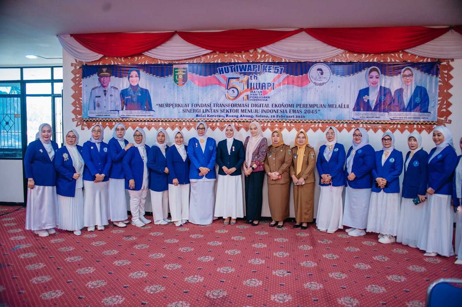 Acara yang mengusung tema “Memperkuat Fondasi Transformasi Digital Ekonomi Perempuan Melalui Sinergi Lintas Sektor Menuju Indonesia Emas 2045” ini diselenggarakan di Balai Keratun Ruang Abung, Selasa (10/02/2026).