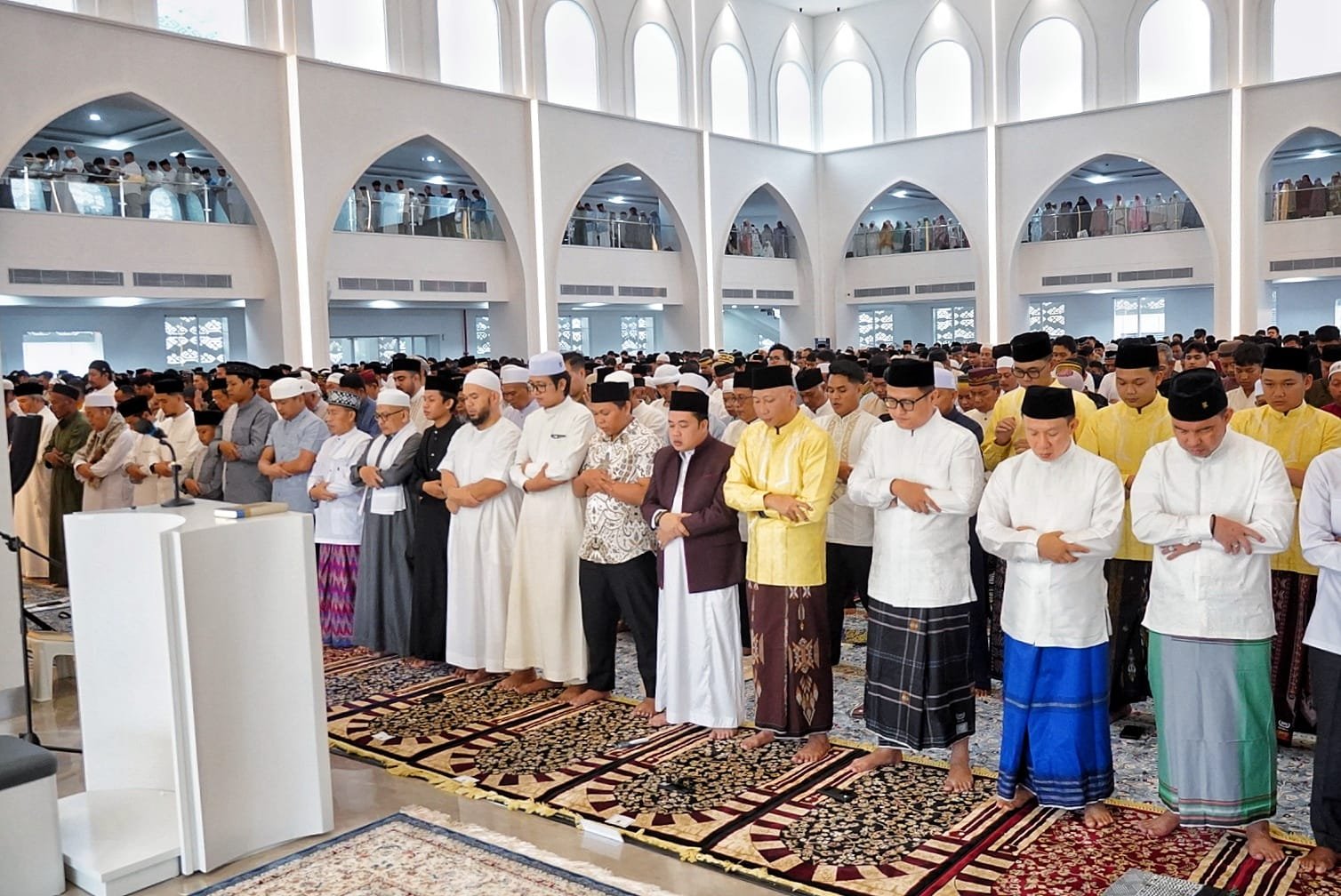 Bandar Lampung –- Gubernur Rahmat Mirzani Djausal melaksanakan Salat Idulfitri 1 Syawal 1447 Hijriah/2026 Masehi bersama masyarakat Lampung di Masjid Al-Bakrie, Sabtu (21/3/2026) pagi.