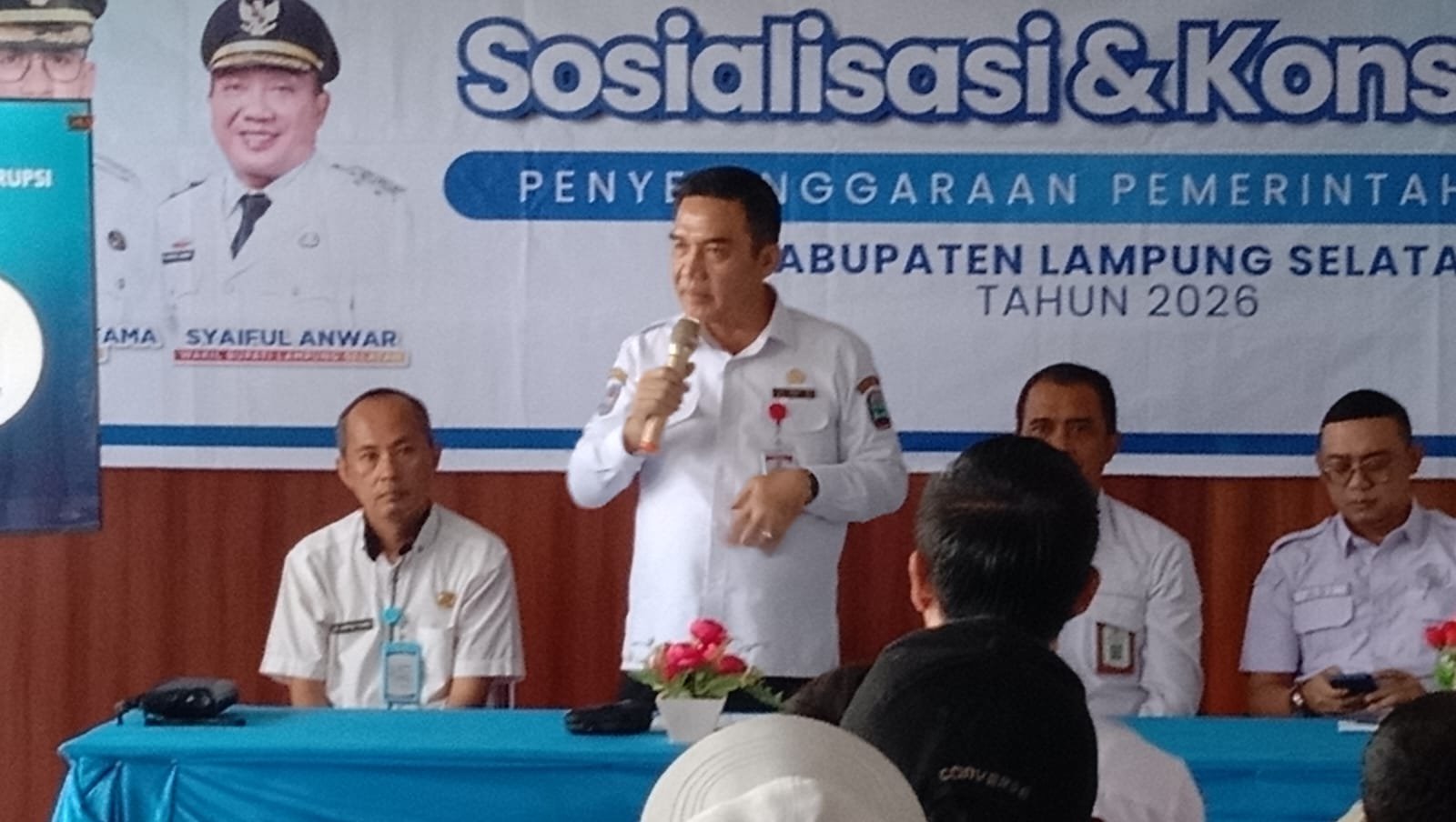 Pemerintah Kabupaten Lampung Selatan melalui tim terpadu mengintensifkan pengawasan tata kelola pemerintahan desa dengan menggelar Sosialisasi BETIK dan Konsultasi Penyelenggaraan Pemerintahan Desa yang diselenggarakan oleh inspektorat Lampung Selatan yang Berlangsung di Aula Kecamatan Jati Agung Kabupaten Lampung Selatan.Rabu.(4/3/2026)