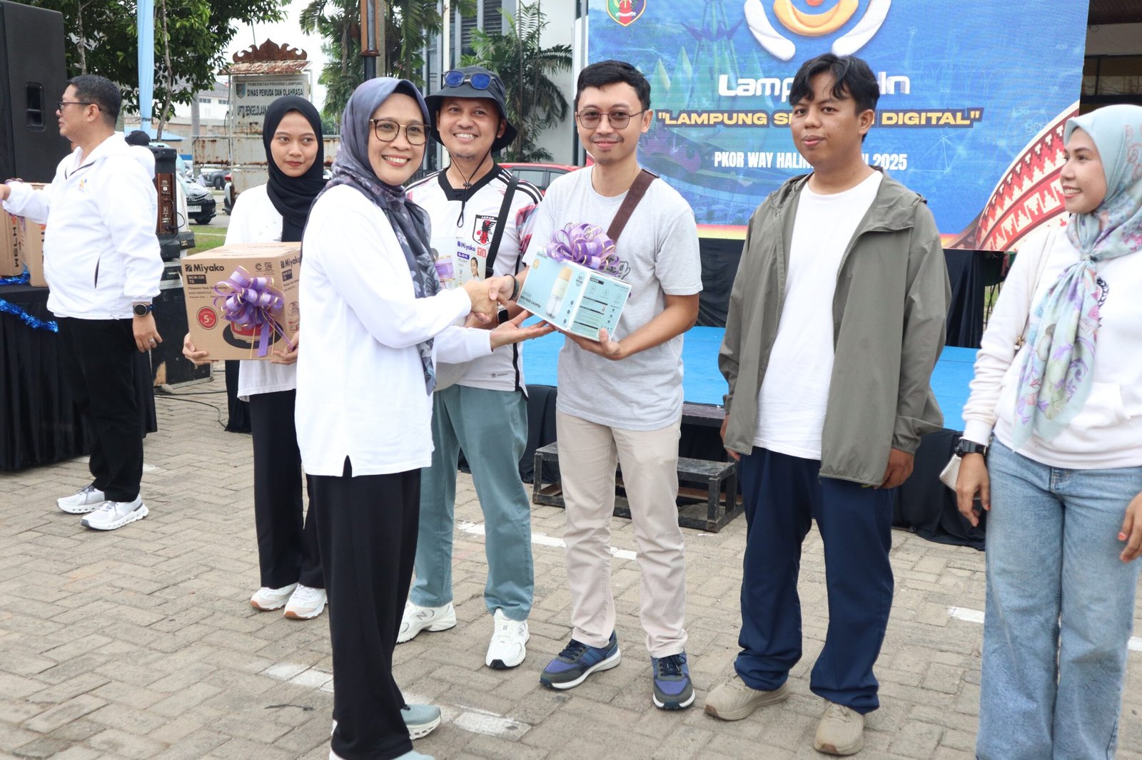 Aplikasi Lampung-In secara resmi diluncurkan oleh Wakil Gubernur Lampung, Jihan Nurlela didampingi Staf Khusus Kepresidenan Hera Nugrahayu, di Lapangan PKOR Way Halim, Minggu (15/6/2025) dan disaksikan oleh sejumlah masyarakat yang tengah melakukan kegiatan olah raga.