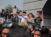 Di bawah terik matahari, Gubernur mendengarkan satu per satu keluhan yang disampaikan perwakilan mahasiswa, buruh, hingga pengemudi ojek daring. Dialog berlangsung terbuka dengan suasana yang relatif kondusif.