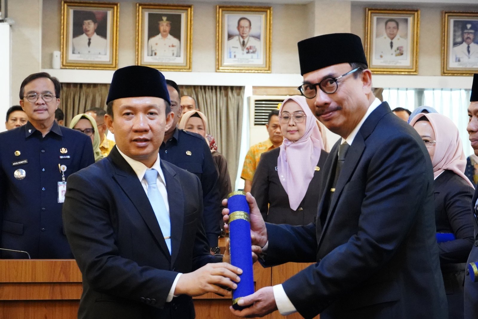 Pemerintah Provinsi Lampung melantik lima Pejabat di Lingkungan Pemerintah Provinsi Lampung, di Ruang Rapat Utama Kantor Gubernur Lampung, Jumat (5/12/2025). Pelantikan dilakukan Sekretaris Daerah Provinsi Lampung, Marindo Kurniawan atas nama Gubernur.