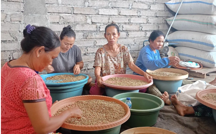Bahkan, di sela-sela aktivitasnya, Niluh masih sempat menertawakan hal-hal kecil seperti anaknya yang berlari-lari di sekitar area pengeringan kopi, atau bercanda ringan bersama pekerja lain untuk mengusir lelah.