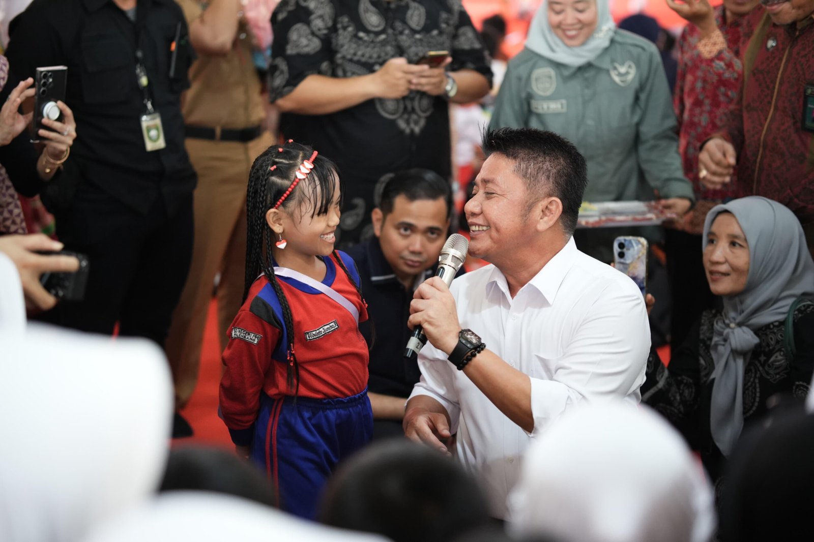 Hadir langsung, Gubernur Sumsel H. Herman Deru membaur bersama anak-anak. Ia berdialog hangat, menanyakan hobi hingga cita-cita mereka saat dewasa kelak. Tak hanya berbincang, Herman Deru juga memberikan kuis berhadiah. Sorak sorai peserta terdengar setiap kali ada yang berhasil menjawab pertanyaan dengan benar. Momen menjadi makin berkesan ketika Doktor Ilmu Komunikasi itu mengajak anak-anak bernyanyi bersama lagu-lagu anak populer seperti Anak Sehat dan Naik Kereta Api.