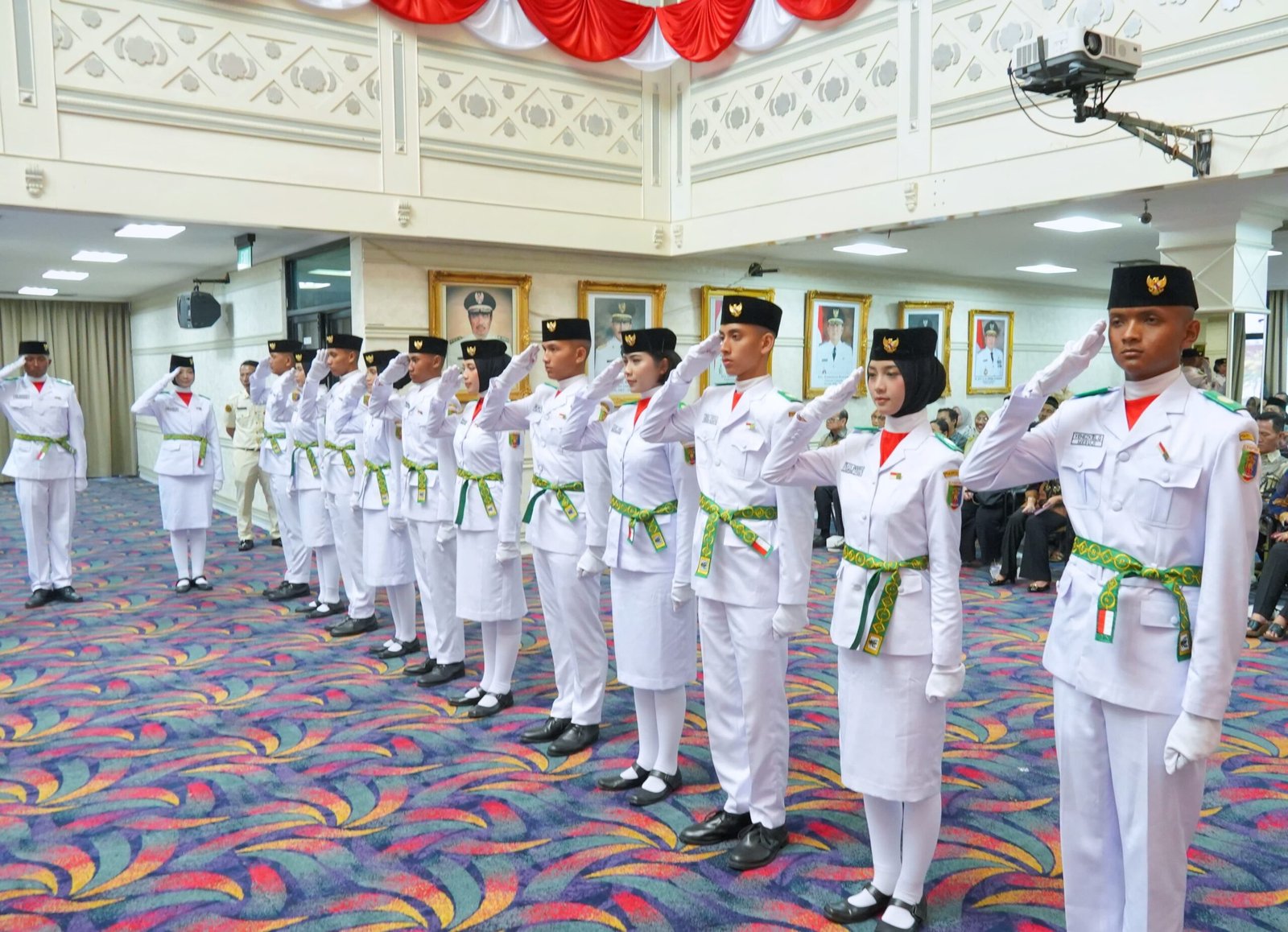 Wakil Gubernur Lampung, Jihan Nurlela mengukuhkan 33 anggota Pasukan Pengibar Bendera Pusaka (Paskibraka) Tingkat Provinsi Lampung Tahun 2025, bertempat di Balai Keratun Lt III, Komplek Kantor Gubernur, Bandar Lampung, Jum’at (15/08/2025).