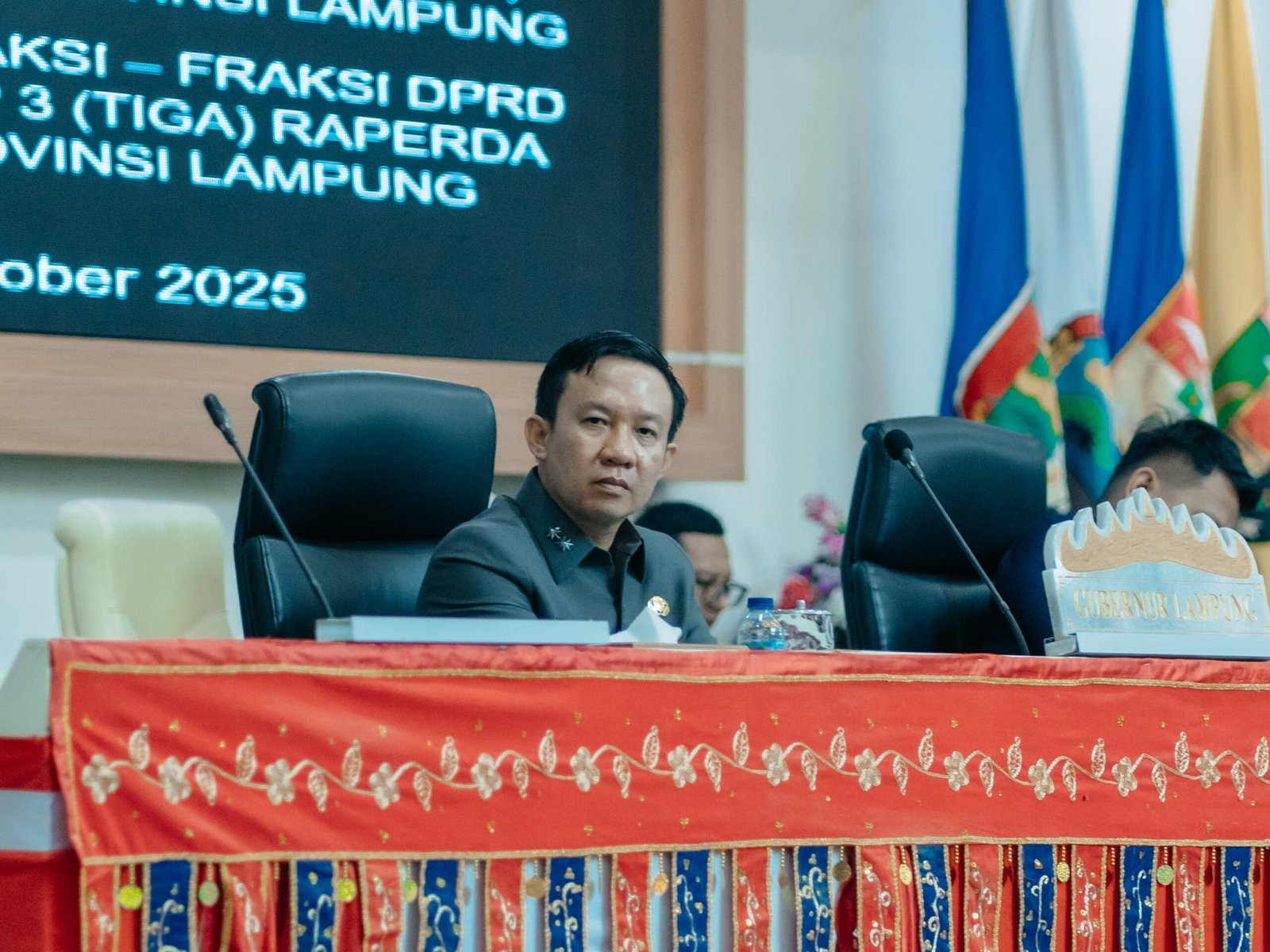 Pemerintah Provinsi Lampung menyatakan setuju untuk melanjutkan pembahasan enam Rancangan Peraturan Daerah (Raperda) usul inisiatif Dewan Perwakilan Rakyat Daerah (DPRD) Provinsi Lampung. Penyampaian pendapat Gubernur Lampung tersebut disampaikan oleh Sekretaris Daerah Provinsi Lampung, Marindo Kurniawan, dalam Rapat Paripurna DPRD di Ruang Sidang Utama DPRD Provinsi Lampung, Kamis (9/10/2025).