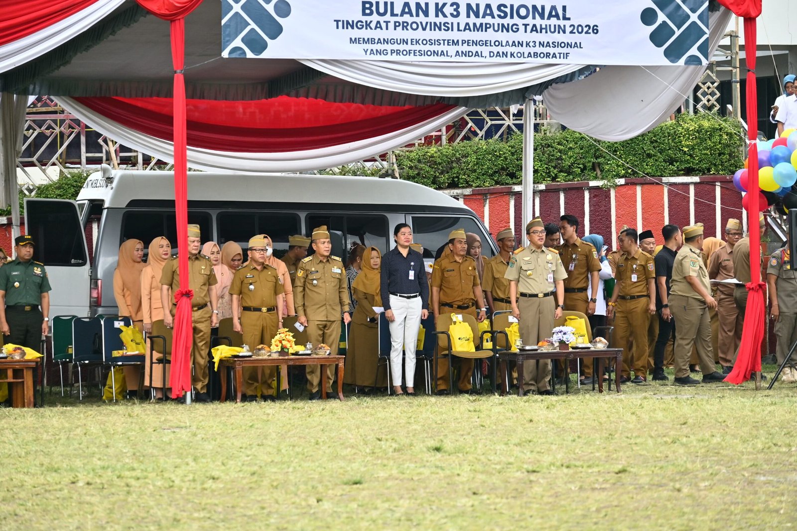 Sekretaris Daerah Provinsi Lampung, Marindo Kurniawan, menjadi Pembina Apel Mingguan di lingkungan Pemerintah Provinsi Lampung yang dirangkai dengan Pencanangan Bulan Keselamatan dan Kesehatan Kerja (K3) Nasional Tahun 2026 tingkat Provinsi Lampung. Kegiatan tersebut dilaksanakan di Lapangan Korpri, Senin pagi (26/1/2026).