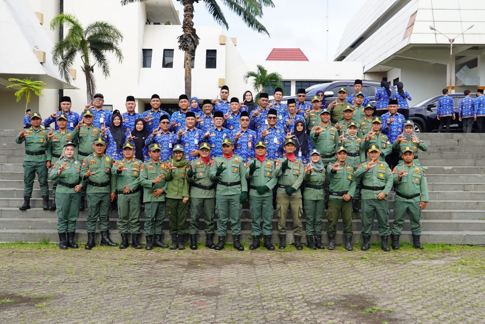 Gubernur Lampung diwakili Asisten Pemerintahan dan Kesra menjadi pembina upacara bulanan di Lingkungan Pemerintah Provinsi Lampung, di Lapangan Korpri, Rabu (17/09/2025).