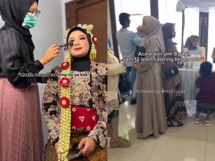 “Maafin vendor katering itu ya ka. Biar kita viralin acara dari jam 9 pagi, jam 12 lebih catering belum ada. Tim WO koordinasi dengan keluarga untuk segera pesan nasi box sebagai pengganti,” tulis akun TikTok @fordays.id dalam unggahannya.