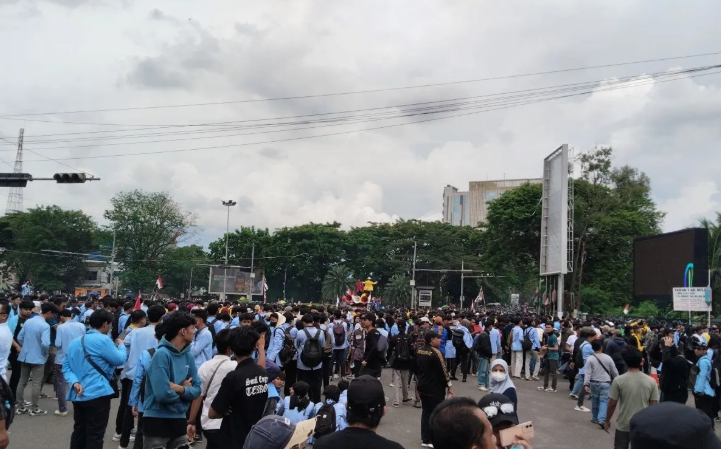 Ribuan mahasiswa yang berasal dari berbagai almamater itu, menggaungkan tuntutannya.