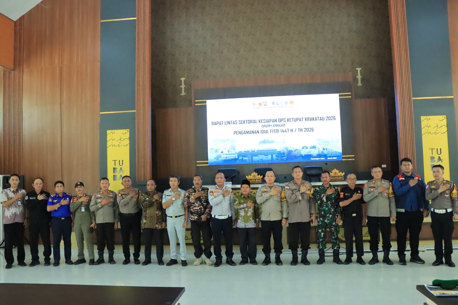 Di dampingi Wakapolres Kompol Zaini Dahlan, S.H., M.H. dan dihadiri oleh unsur Forkopimda, TNI, Dinas Perhubungan, Dinas Kesehatan, Satpol PP, BPBD, Basarnas, Ormas dan Pramuka serta perwakilan instansi terkait lainnyayang memiliki peran penting dalam mendukung kelancaran pelaksanaan Operasi Ketupat Krakatau 2026.