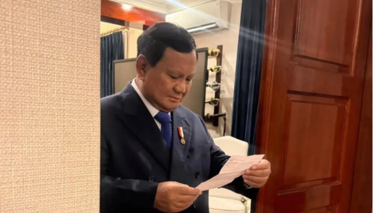 Dalam unggahan foto tersebut, tampak Presiden Prabowo yang mengenakan setelan jas hitam, selayaknya hendak menerima tamu negara, sedang membaca selembar kertas tersebut.