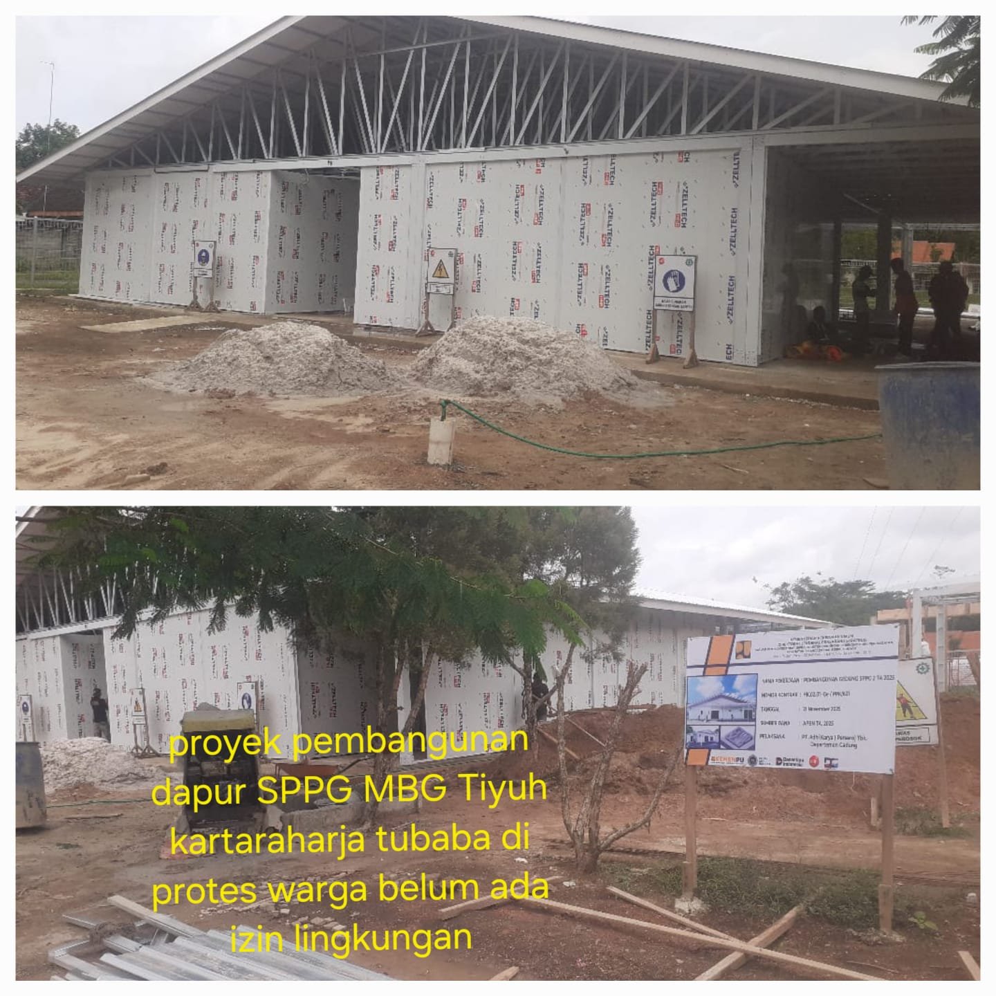 “seharusnya ada izin lingkungan dulu baru bisa berdiri bangunan proyek dapur SPPG MBG itu karena dampak dari usaha itu kepada masyarakat lingkungan pasti ada misalnya bisa aja terjadi sumur kami warga bakal terancam tercemari oleh usaha itu nantinya,”ungkap warga