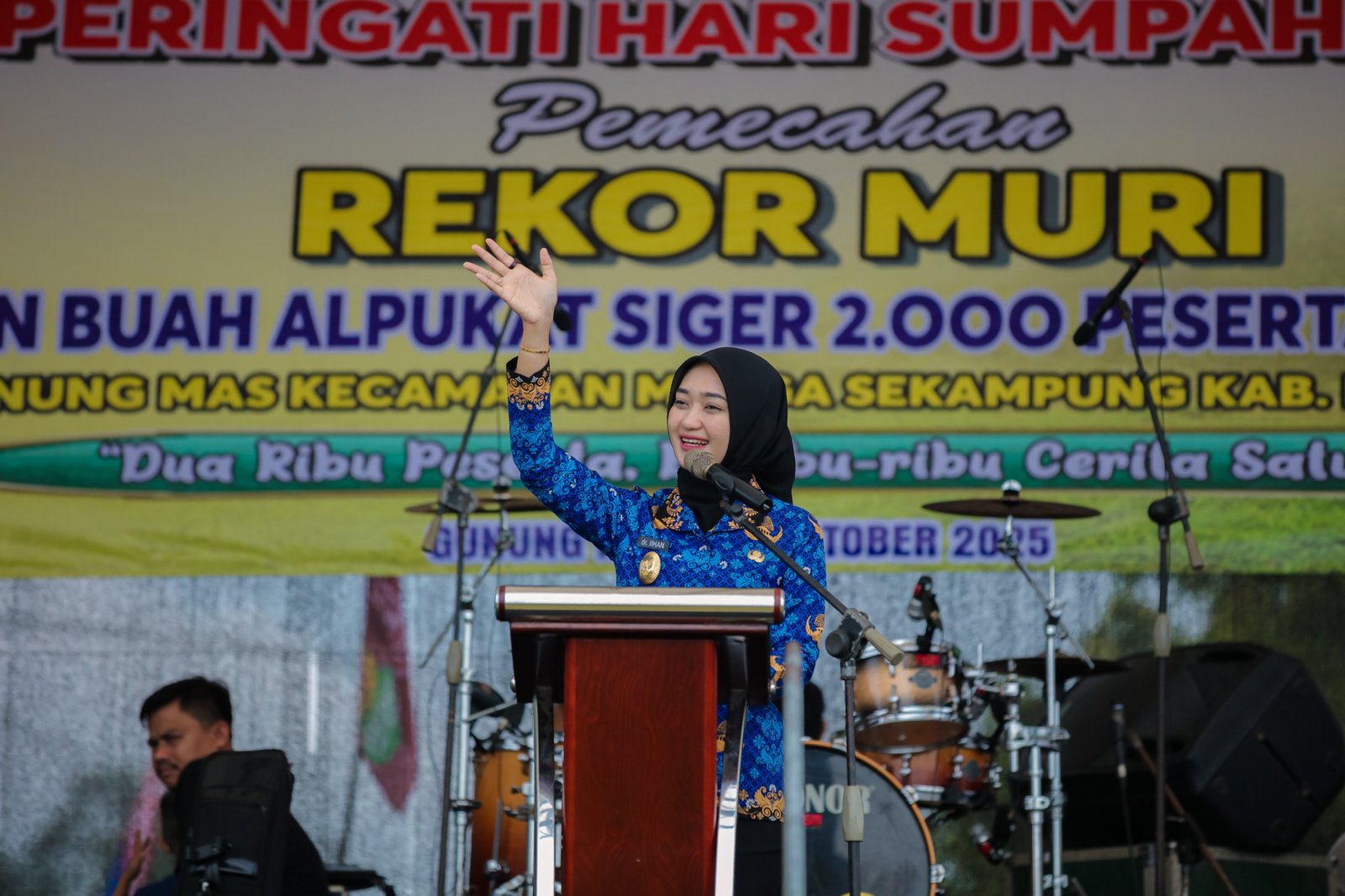 Lapangan Merdeka Gunung Mas dipenuhi keceriaan ribuan warga pada Selasa (28/10/2025) saat digelarnya Pemecahan Rekor MURI Makan Alpukat Siger oleh 2.000 peserta.