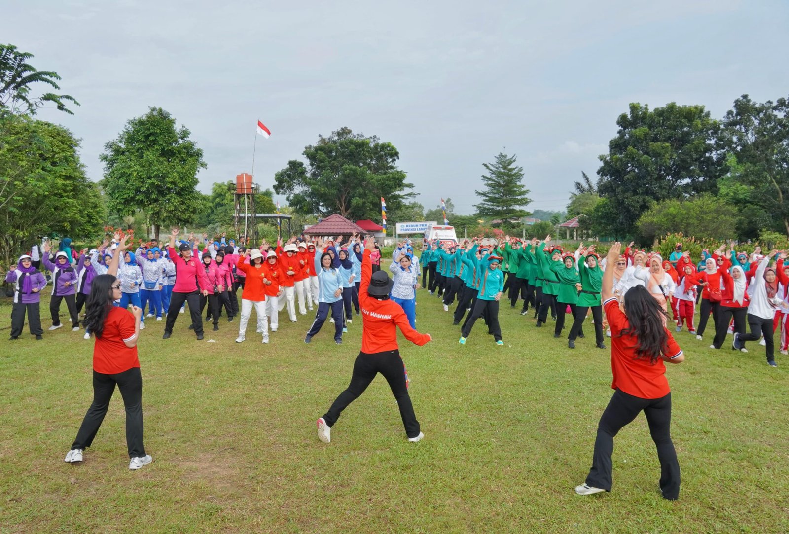PKK Provinsi Lampung bersama Organisasi Wanita se-Provinsi Lampung menggelar senam dan lomba dalam rangka Peringatan HUT ke-80 Republik Indonesia bertempat di PKK Agropark Lampung, Sabah Balau, Kecamatan Tanjung Bintang, Kabupaten Lampung Selatan, Kamis (14/08/2025).