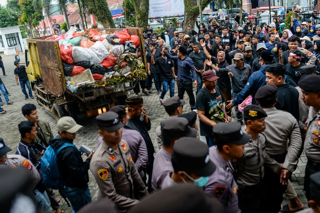 AMPERANEWS.COM – Ratusan warga dari tiga desa di Kabupaten Pandeglang, Banten, kembali melakukan aksi unjuk rasa dengan mendatangi kantor Bupati Pandeglang, Selasa, 12 Agustus 2025. Warga juga melakukan aksi dengan menaburi halaman kantor Bupati Pandeglang dengan sampah.